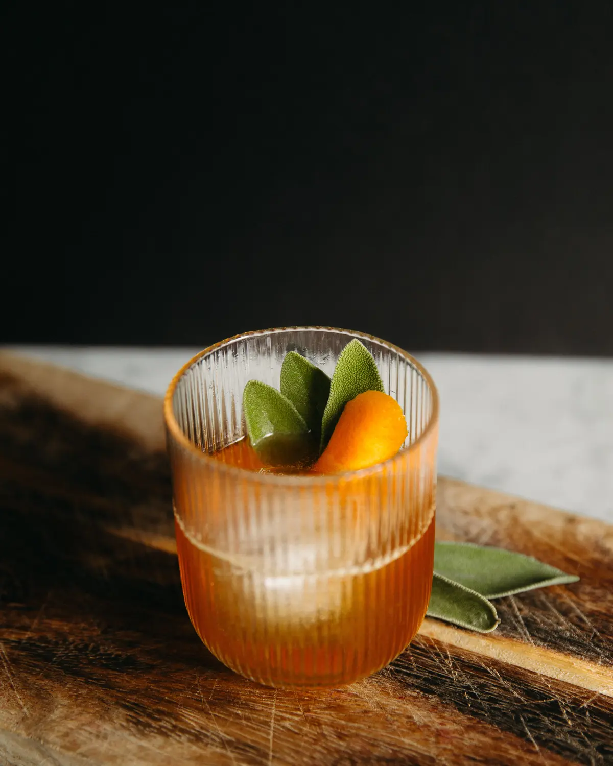 4. Garnish with the orange peel, a fresh sage leaf, and enjoy!
